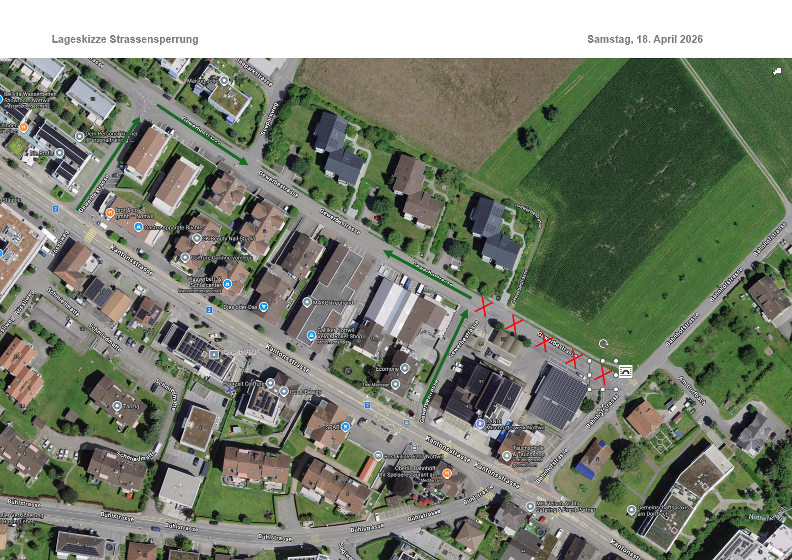 Am Samstag, 18. April 2026 findet im Landi Areal, Sammelstelle und Gewerbestrasse die Viehschau der Braunviehzuchtgenossenschaft statt. An diesem Samstag muss deshalb die Sammelstelle geschlossen bleiben. Von 08:00 bis 17:00 Uhr am 18. April 2026 ist auch die Gewerbestrasse auf dem Abschnitt ab Bahnhofstrasse bis zur Tankstelle gesperrt. Eine Umleitung wird entsprechend signalisiert.