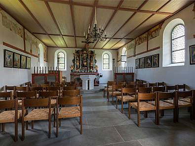 Im Innern der Kapelle finden sich im oberen Teil der Seitenwände Reste des gotischen Margrethenzyklus (Wandmalerei). An der hölzernen Architektur des spätbarocken Altars wurden die Übermalungen entfernt und die Originalfassung des 18. Jh. freigelegt. Die geschnitzten Figuren der Heiligen Margarete, Sebastian und Rochus (er stammt aus dem 16. Jh.) wurden gereinigt und konserviert, ebenso die Leinwandbilder des Rosenkranzzyklus an den Wänden. Ungewohnt sind die beweglichen Stühle anstelle der über Jahrhunderte vertrauten festen Bänke. Auf letztere wurde verzichtet, weil die Kapelle in Zukunft nicht nur Gläubigen und Passanten der Pfarrei Nottwil und seiner Nachbarspfarreien dienen soll, sondern auch den oftmals auf den Rollstuhl angewiesenen Patientinnen und Patienten des nahen Paraplegiker Zentrums.
