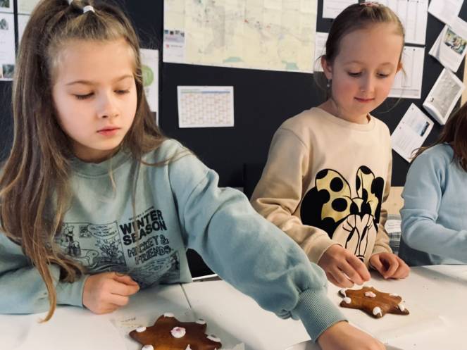 Das Schulhaus der 1. und 2. Klässler hat sich in der Vorweihnachtszeit in eine kleine Weihnachtsbäckerei verwandelt.