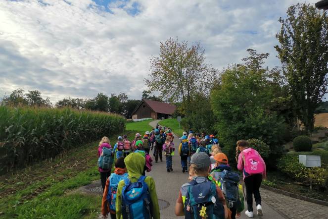 Nach den ersten paar Schulwochen stand kurz vor den Herbstferien die Herbstwanderung für die rund 100 1. und 2. Klass-Kinder auf dem Programm.