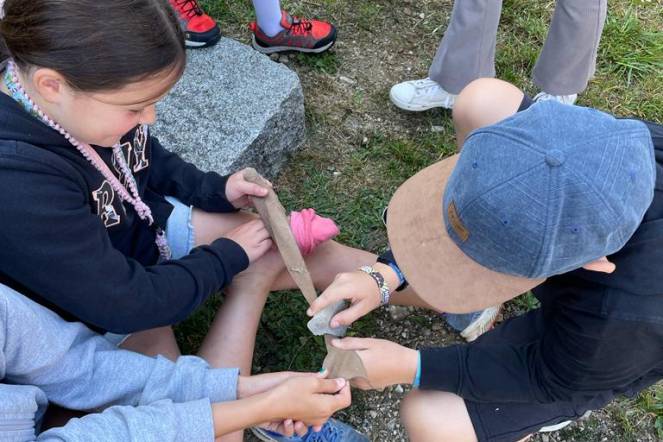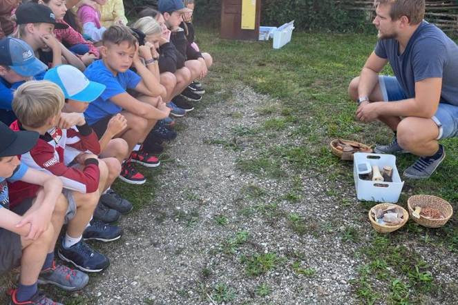 Die zweite Gruppe verweilte auf dem Spielplatz in der Nähe und machte Steinzeitspiele und ein Rätsel. Nach dem Wechsel und einer Znünipause ging es um 11:30 Uhr wieder zurück nach Nottwil.