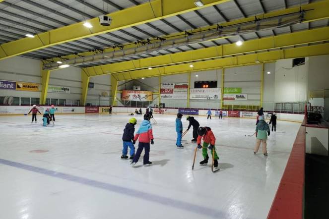 Auf dem Eis wurden anschliessend Pirouetten gedreht, Pucks im Tor versenkt oder auch mit letzter Kraft versucht, sich auf dem glatten Eis ohne Sturz fortzubewegen.
