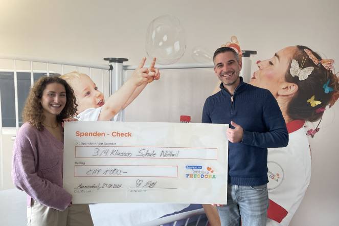 Dank des erfolgreichen Verkaufes am Weihnachtsmarkt im SPZ durften wir den Betrag von 1000 Fr. der Stiftung Theodora spenden.