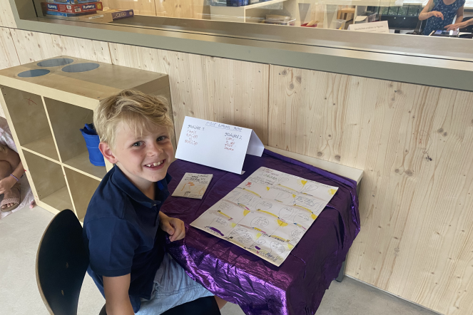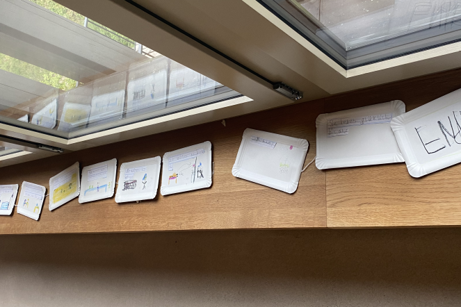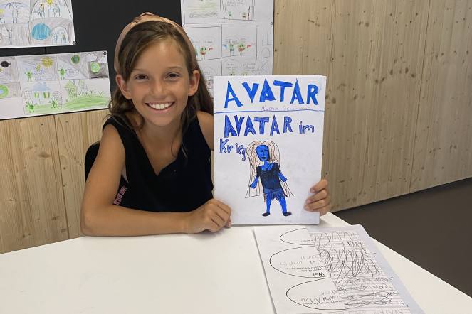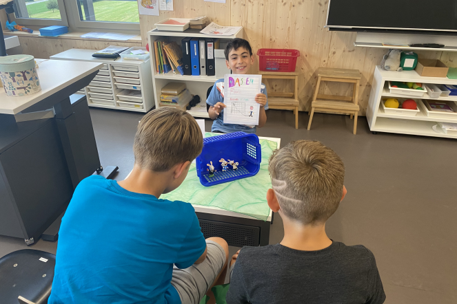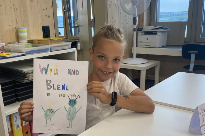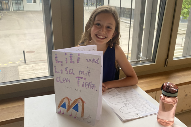 Seit einigen Wochen beschäftigen sich die Kinder von Frau Herguedas, Frau Wicki und Frau Wyss mit dem Thema Geschichten erfinden und schreiben. Die Kinder lernten, wie man mit dem Ideennetz Ideen für seine Geschichte sammeln, ordnen und notieren kann. Mit den gesammelten Ideen wurden dann verschiedenste Arten von Geschichten ausprobiert. Die Kinder schrieben Mini-Bücher, Comics, Bildergeschichten oder Tellergeschichten. Das breite Spektrum an Geschichten und die fantastischen Ideen durften natürlich den Eltern nicht vorenthalten werden. So durften die Familien zum Abschluss des Schuljahres zu einem Apéro vorbeikommen und sich die fantasievollen Geschichten der Kinder anhören.
