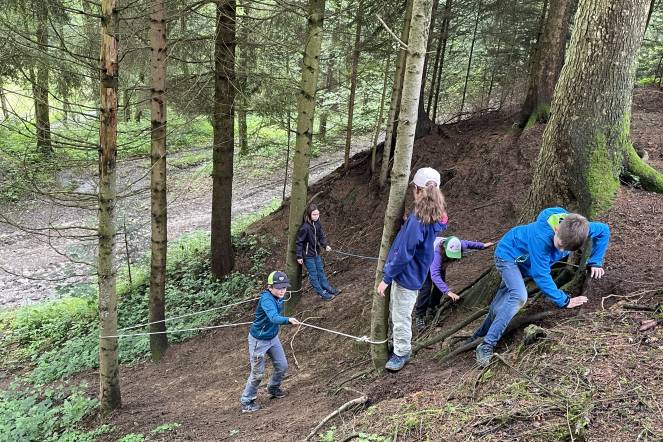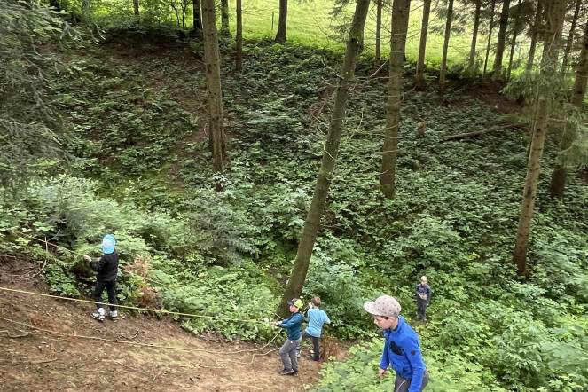 Es gab ein cooles Tal. Wir konnten uns austoben. Das Laufen war ein bisschen anstrengend. Es war cool! (von Arno, Lenn und Marlon)