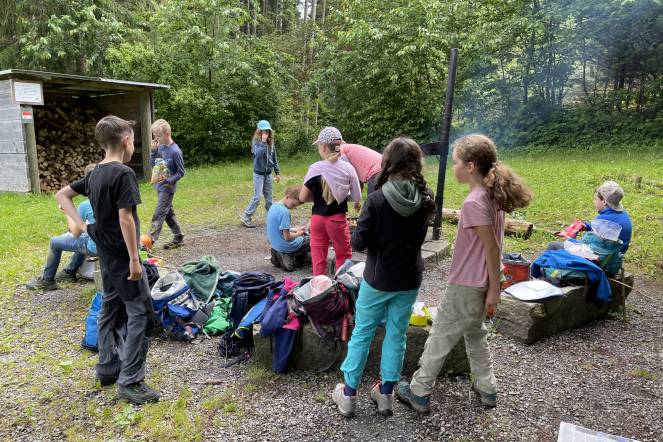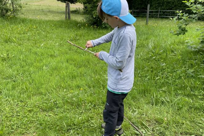 Wir sind weit gewandert. Im Wald konnte man super spielen. (von Katharina)
