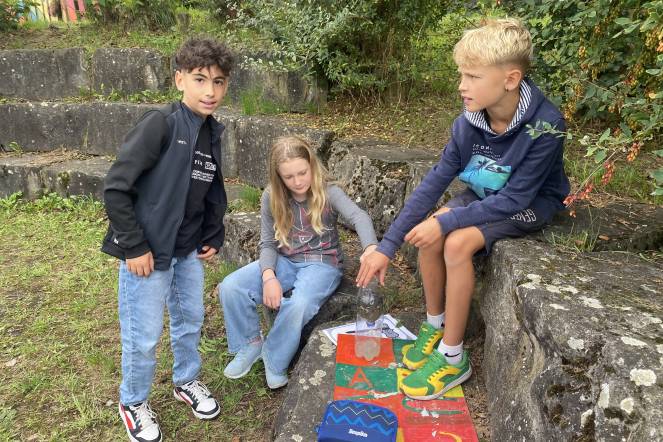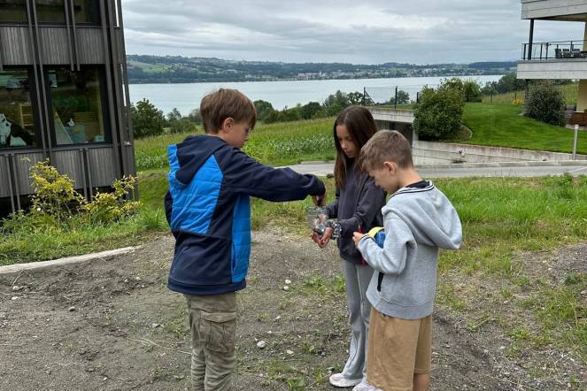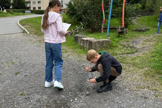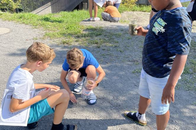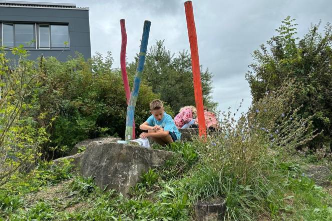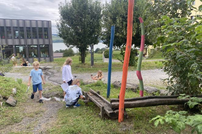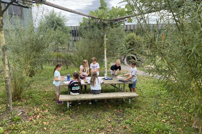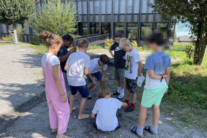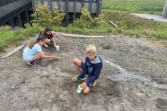 Die Kinder der 4.Klassen haben beispielsweise Vermutungen darüber angestellt, was mit dem Regenwasser auf dem Pausenplatz passiert. Wie werden die Asphaltbeläge wieder trocken? Wohin geht das Wasser auf den Naturbelägen, wie Rasen oder Kies? Wohin führen die Schächte, in welchen das Wasser abfliessen kann? Mit Zeichnungen und Notizen wurden die Vermutungen festgehalten.