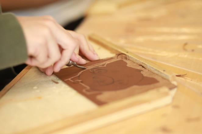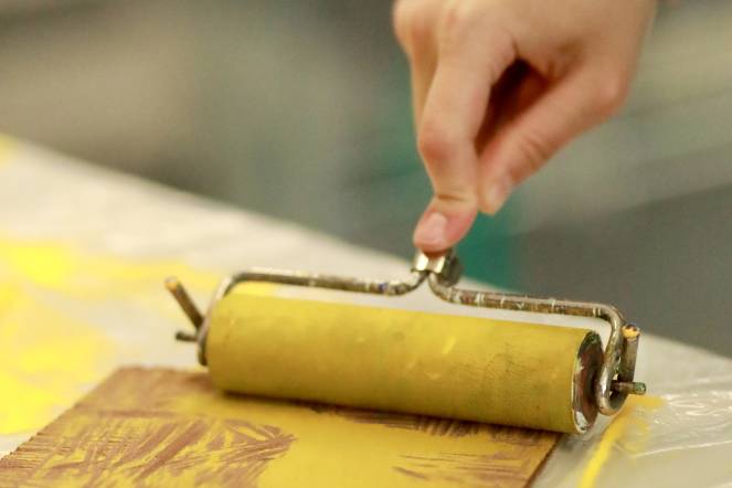 Druck-Technik/Siebdruck: Die Kinder lernten verschiedene Drucktechniken und Materialien kennen. Ihr Wissen vertieften sie mit einem Workshop des K'werk Zug, bei dem mit Legosteinen als Druckmaterial gearbeitet wurde.
