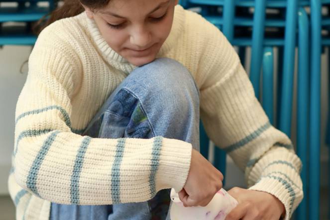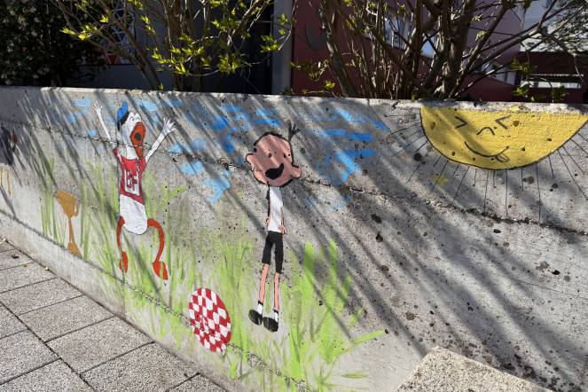 Zusätzlich zu den spezifischen Projekten in den Ateliers arbeiteten die verschiedenen Gruppen auch daran, unser Schulgelände zu verschönern. Sie bemalten Aussenwände, gestalteten farbenfrohe Mosaiken und setzten kreative Land-Art-Projekte um.