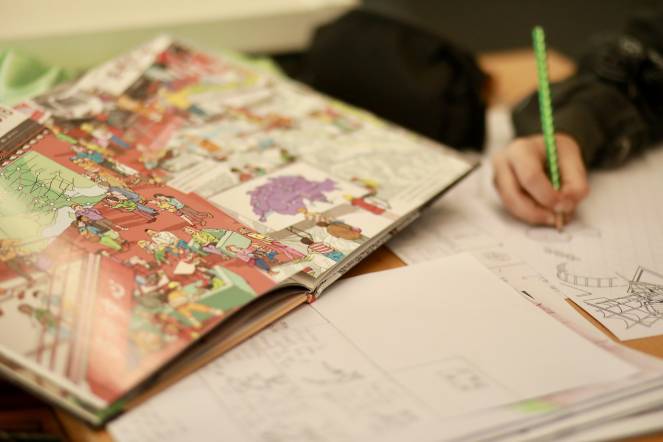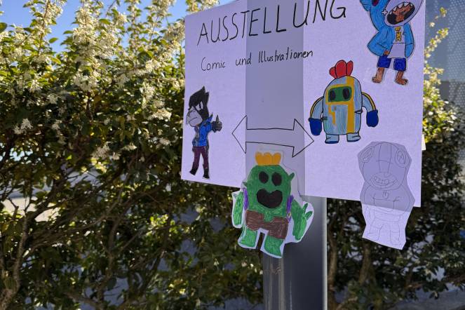 Comic/Illustration: Im Comic-Atelier lernten die Kinder, wie man eine Comicfigur abzeichnet und eigene Comicfiguren entwirft. Sie erforschten verschiedene Techniken, um Spannung in ihren Comics zu erzeugen. Mit dem Sprayer Sven Stalder arbeiteten die Kinder an einer eigenen Comicfigur und der Illustrator Konrad Beck gab den Schülern am Dienstagmorgen wertvolle Tipps und Tricks wie man ein Wimmelbild gestalten kann.