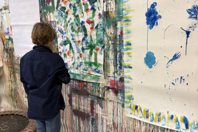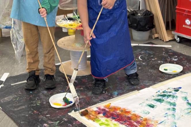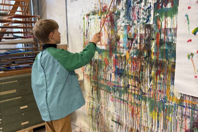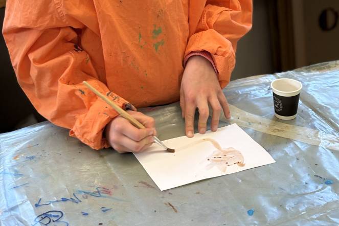 Tüfteln mit Farben: Farben standen im Zentrum dieses Ateliers. Die Kinder durften ausprobieren und experimentieren. Auf einem Ausflug in das Bildwerk in der Sentimatt in Luzern lernten sie, mit langen Pinseln zu malen, Naturfarben herzustellen und an einer grossen Wand kreativ zu werden.