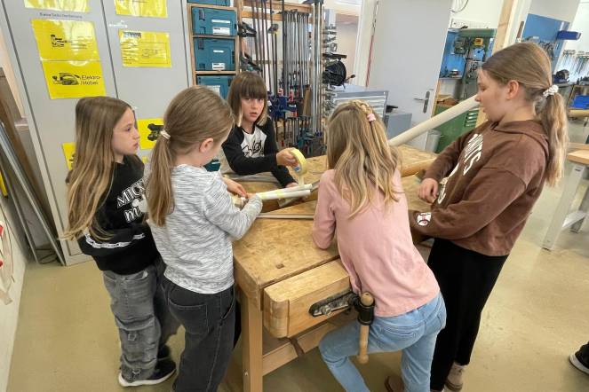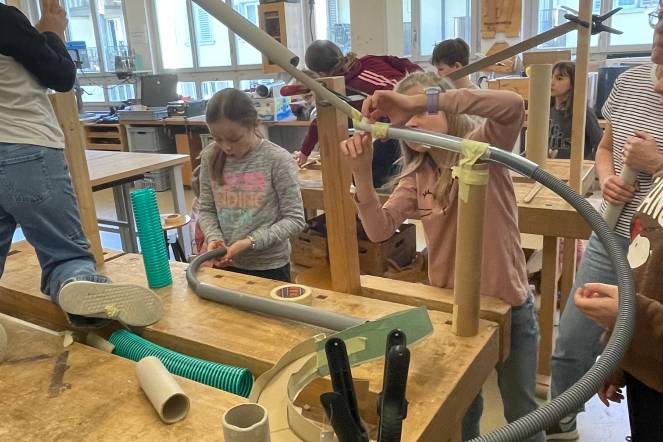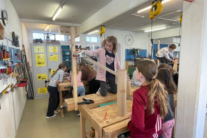 Modellieren: Die Kinder arbeiteten plastisch mit verschiedenen Materialien und lernten, wie man Materialien so verbindet, dass sie stabil bleiben. Sie stellten eigene Materialien her und verwandelten 2D-Papier in 3D-Figuren. Dieses Atelier bot viele Möglichkeiten zum Tüfteln und Erkunden. Ein Höhepunkt war ein Ausflug in die Tüftelwerkstatt in Luzern, wo die Kinder ihre Techniken weiter vertiefen und praktische Erfahrungen sammeln konnten.