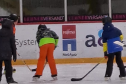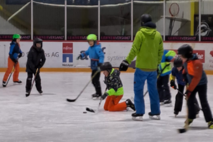 Mehrheitlich etwas wacklig verbrachten die Kinder die restliche Zeit am Morgen auf dem Surseer Eisfeld. Neben fachkundigen Lehrpersonen half auch der Juniorentrainer des EHC Sursee Fido Wyss tatkräftig mit, dass Eishockey gespielt werden konnte oder man vertiefte das vor- und rückwärts fahren. Für einige Kinder kam es aber auch gelegen, dass es noch Hilfsmittel gab, um möglichst sturzfrei über das Eis zu gleiten.