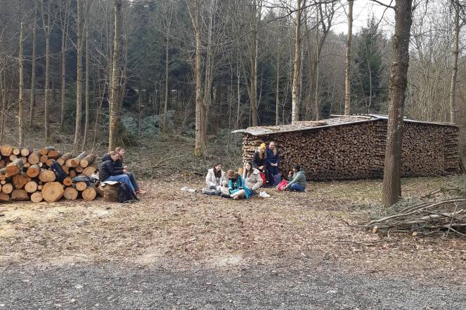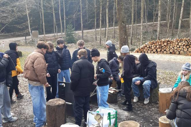 Nach einem abwechslungsreichen Indoor-Morgen mit Jonglieren & Spielen folgte eine Wanderung in den Wald, wo bereits ein Feuer brannte. Dort wurde gemeinsam zu Mittag gegessen.