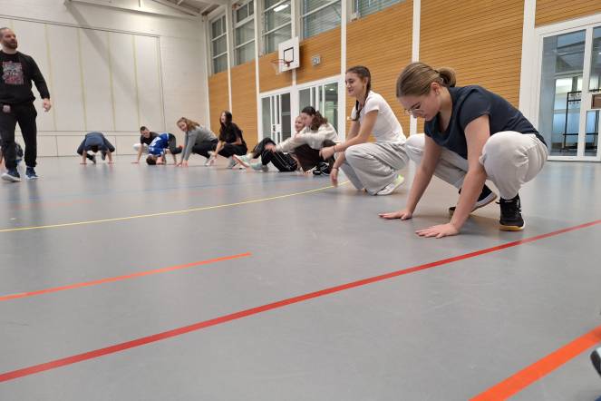 Unter der Leitung der 'Dirty Hands'-Breakdance-Gruppe durften die Schülerinnen und Schüler am Donnerstag einen Breakdance-Workshop absolvieren und sich auf vielfältige Art und Weise zu Musik bewegen!