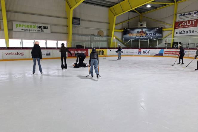 Das Team 'Mario' fuhr mit dem Bus nach Sursee, verbrachte dort eine tolle Zeit auf dem Eisfeld und wanderte danach zurück nach Nottwil. Im Gegensatz dazu startete das Team 'Luigi' mit der Wanderung und durfte nach der Eis-Zeit dafür dann, ganz bequem, den Bus zurück nach Nottwil nehmen.