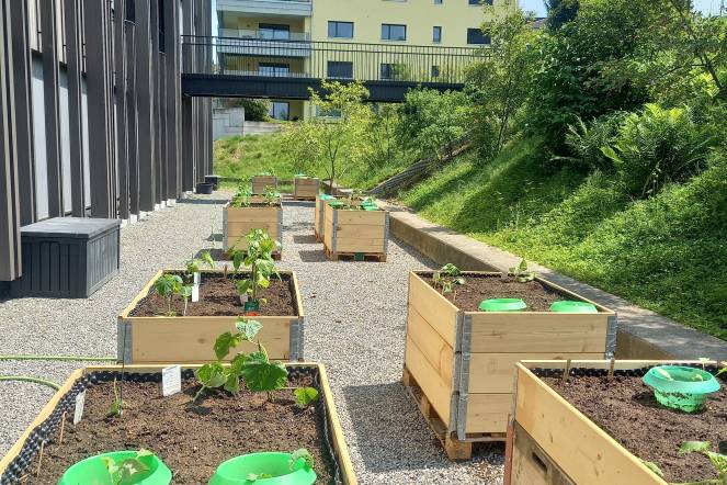 Schon bald wird unser Schulgarten der Schulhauserweiterung weichen müssen. Wir haben deshalb gemeinsam mit den 1. und 2. Klässler:innen Hochbeete als Ersatz gebaut. Voller Elan haben wir die Beete mit verschiedenen Rindenschnitzeln und verschiedenen Erdschichten gefüllt und anschliessend bepflanzt. Es wachsen bereits Gurken, Peperoni und Salat. Auch die ersten Radieschen und Karotten spriessen bereits. Wir giessen fleissig und freuen uns schon jetzt aufs Ernten!