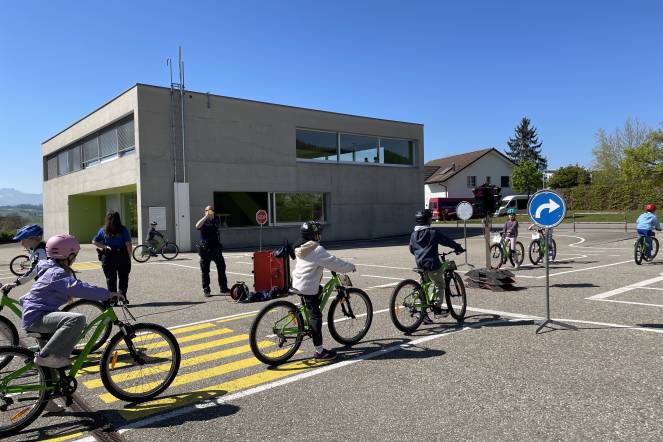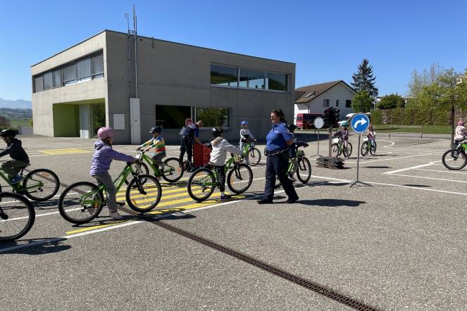 Bei strahlendem Sonnenschein besuchte unsere Klasse den Verkehrsgarten. Mit dem Velo konnten die Schülerinnen und Schüler wichtige Verkehrsregeln ganz praktisch üben. Besonders das Links- und Rechtsabbiegen sowie das sichere Fahren im Kreisverkehr standen im Mittelpunkt. Mit viel Freude und Engagement sammelten die Kinder wertvolle Erfahrungen für den Alltag im Strassenverkehr.