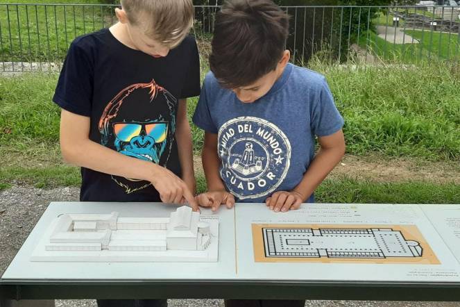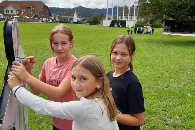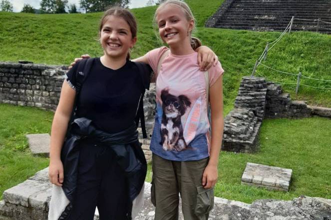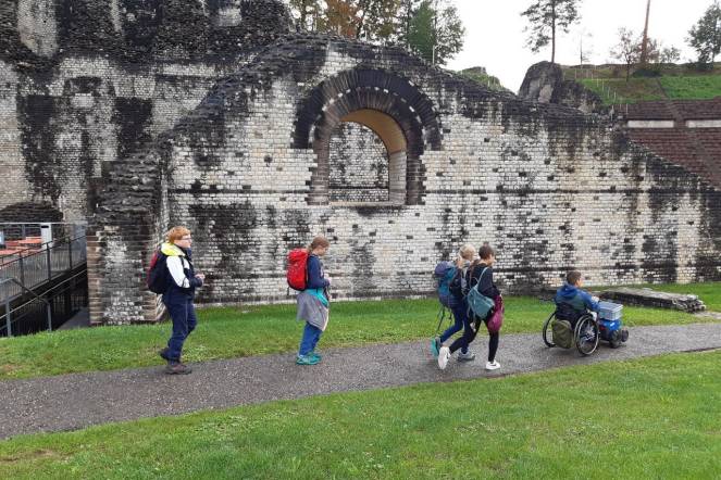 Im Theater der Römerstadt gab es einen Input zur Entstehung und dem Untergang der Römerstadt. Danach wurden die Klassen in zwei Gruppen geteilt. Die erste Gruppe konnte bei einem OL die verschiedenen Gebäude aus der Römerzeit entdecken. Die OL-Route führte vom Theater, zur Backstube, am Tempel vorbei, zur Badeanlage und zu den Überresten des Forums und der Basilika.