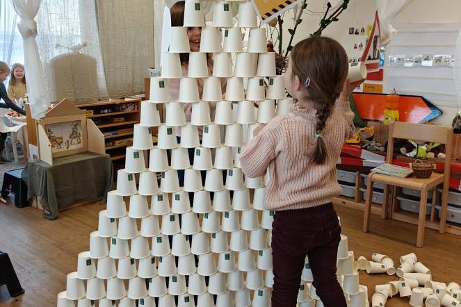 Mit Bauhelmen auf dem Kopf und Werkzeug in der Hand entdecken die Kinder, wie spannend die Welt des Bauens ist. Gemeinsam planen wir kleine Projekte, messen, stapeln und konstruieren. Dabei lernen die Kinder nicht nur, wie man etwas stabil baut, sondern auch, wie wichtig Teamarbeit ist: Wer hilft beim Halten? Wer misst nach? Wer hat die Idee für das nächste Bauwerk?