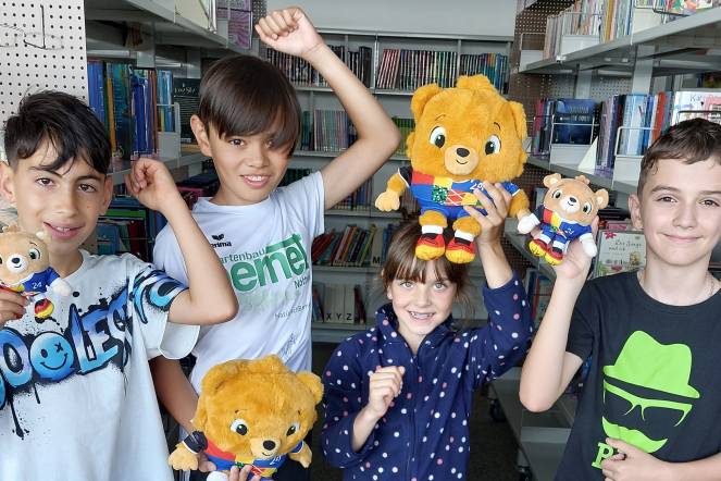 Mit den Maskottchen wollen diese nun ihre Lieblingsmannschaften (Schweiz, Deutschland, Italien) anfeuern.