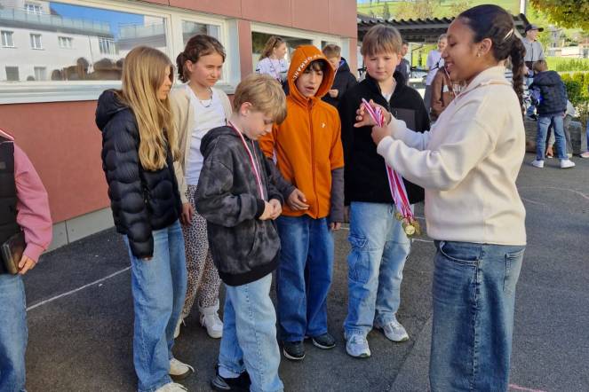 Am Donnerstagnachmittag, 23. April 2026 durften die 5./ 6. Klassen bei Sonnenschein an einem Fussballturnier auf dem Bühlwäldli-Fussballplatz teilnehmen. Gespielt wurde auf zwei Feldern, wobei sich auf Feld 1 die 6. Klassen und auf Feld 2 die 5. Klassen in gemischten Gruppen duelliert haben. Der Sportnachmittag war ein voller Erfolg: Die Schüler:innen gaben Vollgas, motivierten einander gegenseitig, es wurde viel gelacht und alle blieben verletzungsfrei. Am Freitag folgte dann die Siegerehrung auf dem Schulhausplatz. Alle Plätze wurden vorgelesen, jeweils die ersten drei Plätze erhielten eine Medaille und der erste Platz sogar einen Pokal. Alle Schüler:innen und Schüler wurden zudem mit einem Ramseier-Apfelsaft für ihr Mitmachen belohnt.