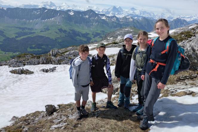 Heute sind wir um 6:30 Uhr aufgestanden und wurden mit einem Lied von Bob Marley, Travis Scott und Eminem geweckt. Danach haben wir etwas leckeres gefrühstückt und danach haben wir unsere Sachen zusammengepackt und haben uns bereit für den Wandertag gemacht. Dazu gehörte Sandwiches streichen für den Mittag. Bei den Wanderungen konnte man auswählen, ob man eine leichte, mittlere oder schwierige Wanderung machen möchte. Die leichtere Wanderung fuhr mit Frau Meyer und Frau Spanier zur Gondelbahn Rossweid. Wir liefen die Strasse hoch zum Restaurant und sind den Sonnentauweg abgelaufen. Zum Mittag gab es die Sandwiches und weitere Leckereien. Nachher gingen wir mit der Gondel runter. Bei der mittleren Wanderung sind wir von Flühli zum Chessiloch gewandert. Dort konnten wir den Wasserfall bestaunen und trauten uns sogar alle über die Hängebrücke zu laufen. Beim Rückweg gingen wir Kneipen, was ein riesiges Highlight war. Das Wasser war eiskalt und erfrischend. Bei der schwierigen Wanderung sind wir mit Herr Koch und Celine auf den Hengst gewandert. Bei der schönen Aussicht haben wir Mittag gegessen. Da oben gab es sogar noch Schnee. Die Wanderung dauerte etwa 5 Stunden und war sehr felsig und etwas steil. Trotz Anstrengung waren wir alle glücklich. Am späten Nachmittag waren wir noch in einem Freibad in Schüpfheim. Dort haben wir Volleyball und Fussball gespielt und gebadet. Im Freibad gab es eine Rutsche sowie ein 1-Meter- und ein 3-Meter-Sprungbrett. Nach einer kurzen Freizeit gab es leckere Würste mit Salaten und Chips. Am Abend gab es Disco und Spiele. Der Tag hat uns allen sehr gefallen und wir hatten viel Spass.