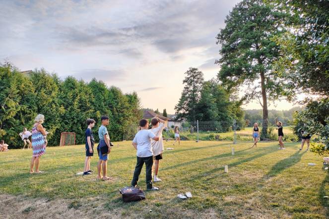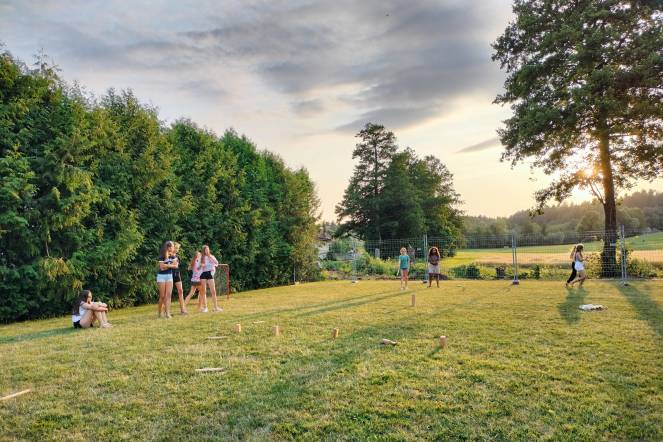 Nach der Ankunft rannten alle wie die Teufel zu den Zimmern. Frau Kottmann überraschte uns erneut, diesmal mit einem Apero. Anschliessend hatten wir Zeit für uns, wir spielten viele Spiele. Später gab es ein mega leckeres Rice Casimir. Das Abendprogramm sieht wie folgt aus: Mölkki, Königschach, Ping Pong oder Tischtennis. Wir freuen uns auf einen tollen Abend und eine ruhige Nacht.