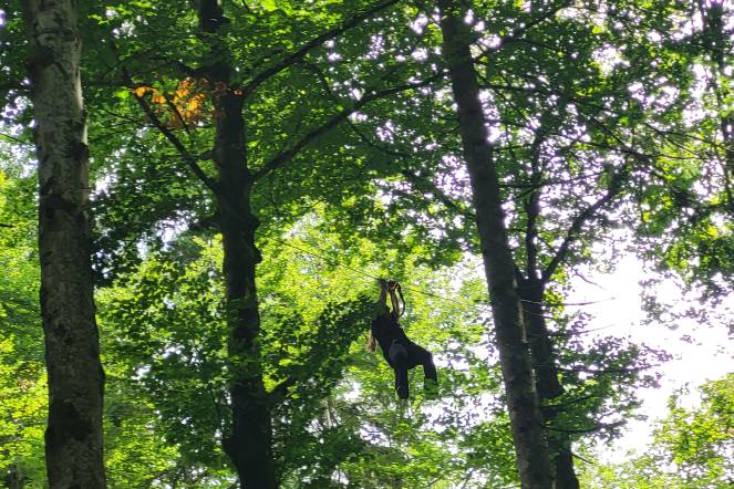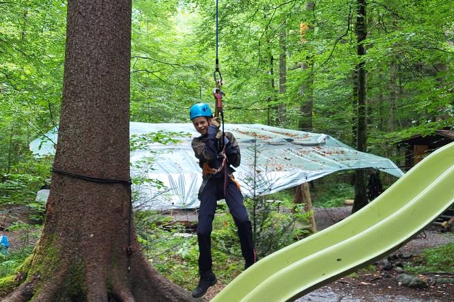 Heute stand der Seilpark auf dem Programm. Zu Fuss liefen wir zum Seilpark. Im Seilpark hatten wir alle Spass und eine gute Stimmung. Wir waren alle sehr motiviert auch die schwierigsten Bahnen zu bestreiten. Auch die eine oder andere Panikattacke galt es zu überstehen, aber alle haben auch dies mit Bravour bestanden. So konnten wir die 3 Stunden voll ausnutzen. Danach assen wir wieder ein super Z’Mittag, welches von Frau Kottmann gemacht wurde. Nach dem feinen Schnitzelbrot von Frau Kottmann gingen wir gestärkt mit neuer Energie zum Lagerhaus zurück. Anschliessend machten wir uns trotz dem starken Regen und der fehlenden Motivation auf den Weg ins Dorf. Im Dorf angekommen wartete ein OL-Rätselspass auf uns. Mit Regenschirmen bewaffnet ging es los. In Gruppen suchten wir die verschiedenen Posten und versuchten die Aufgaben zu lösen. Am Abend hatten wir einen grossartigen Filmabend.