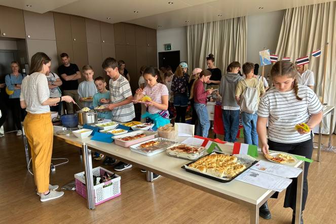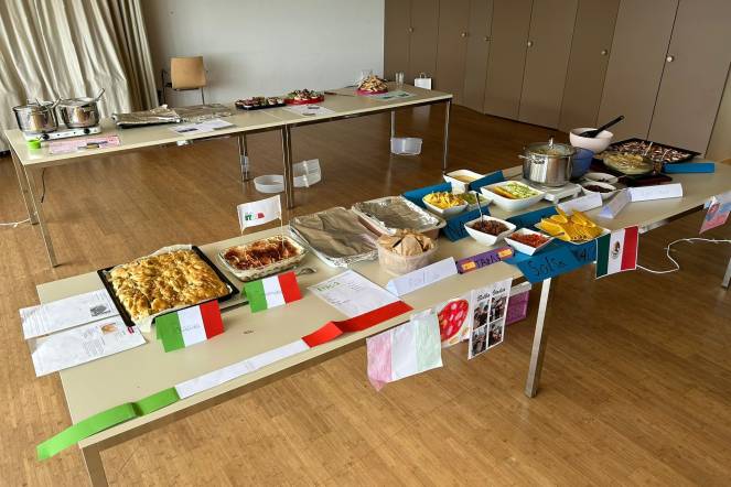 Rund 20 Vor-, Haupt-, und Nachspeisen aus über 15 Ländern konnten am Mittag vom 5. Mai im Singsaal probiert werden.