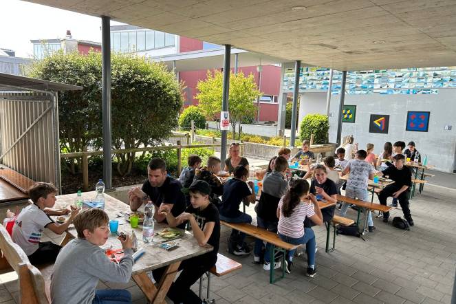 Am Mittag vom 5. Mai 2022 hörte man auf dem Schulhausareal…