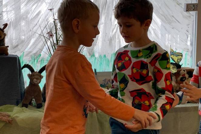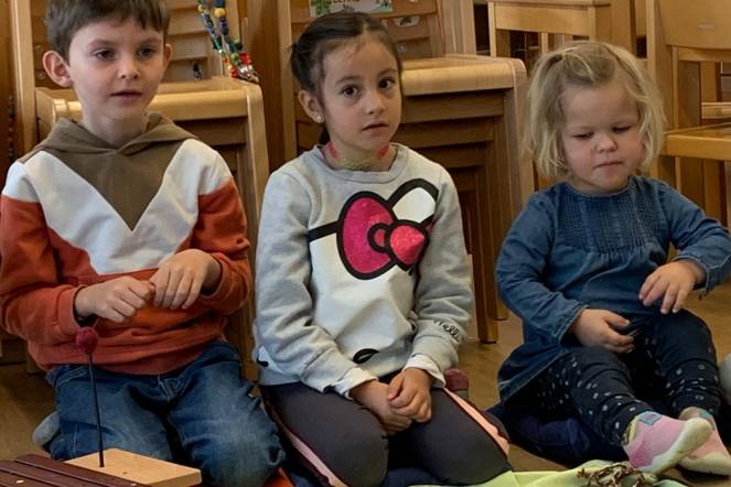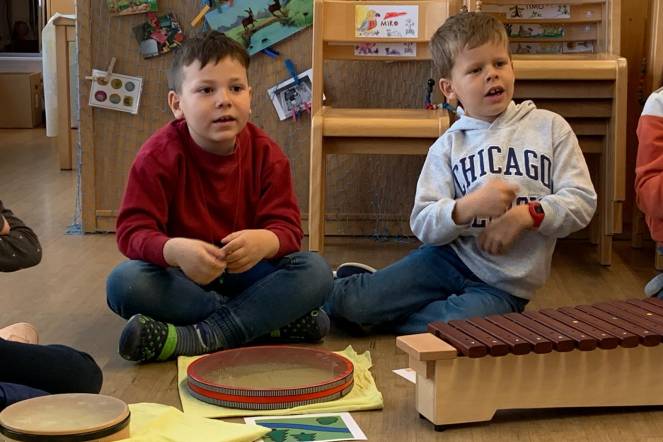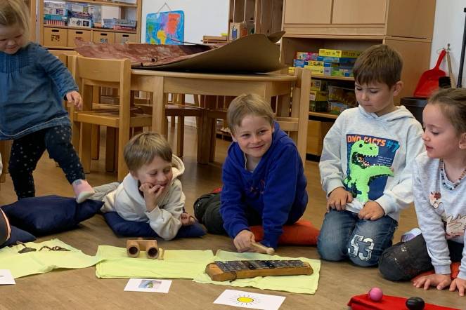 Wir planen im Kindergarten im Juni ein Theater mit den beiden Steinböcken Gian & Giachen zu spielen. Zurzeit lernen wir mit den Kindern die Geschichte gut kennen. Gemeinsam haben wir dazu die Geschichte mit Instrumenten vertont. So klopft der Specht auf dem Agogo, mit dem Ozeandrum wird das Bachgeräusch nachgespielt oder die Sternschnuppen erscheinen mit feinen Cymbelnklängen. Die Kinder versetzen sich in die verschiedenen Rollen der Tiere und sind schon oft am überlegen, ob sie dann gerne den Bartgeier Candrian, den Luchs Leo oder doch lieber das Murmeltier Madlaina spielen möchten. Eine spannende Zeit mit viel Rollenspiel, Kullissenbau und Requisiten gestalten, steht uns bevor.