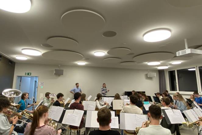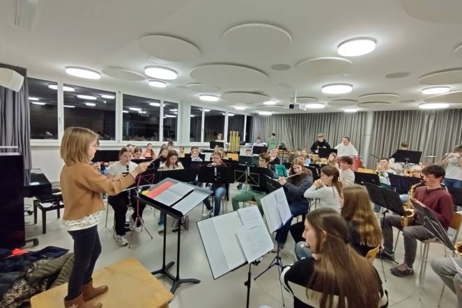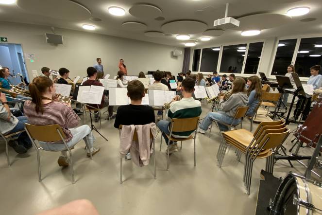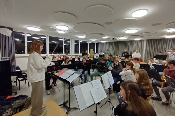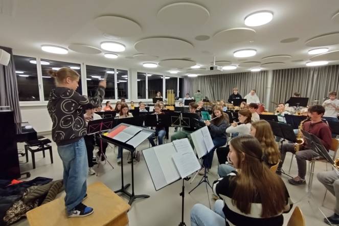 Ein besonderes Highlight war das Arbeiten mit echten Partituren. Besonders intensiv haben sie die Lernenden mit dem Stück Everytime We Touch auseinandergesetzt. Der krönende Abschluss erfolgte am Dienstagabend. Die sieben Lernenden durften selbst vor einer 45ig-köpfigen Jugendmusik stehen und ein Stück dirigieren. Mit grosser Begeisterung und viel Mut gaben sie den Takt an und spürten, wie es ist, ein ganzes Orchester mit der eigenen Energie zu leiten.
